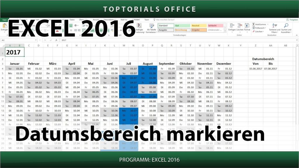 Datumsbereich im Kalender markieren In diesem Tutorial zeige ich Euch wie Ihr mit Excel einen Datumsbereich im dynamischen Kalender markieren könnt. Dies ist eine einfache Variante und gibt Euch die […]