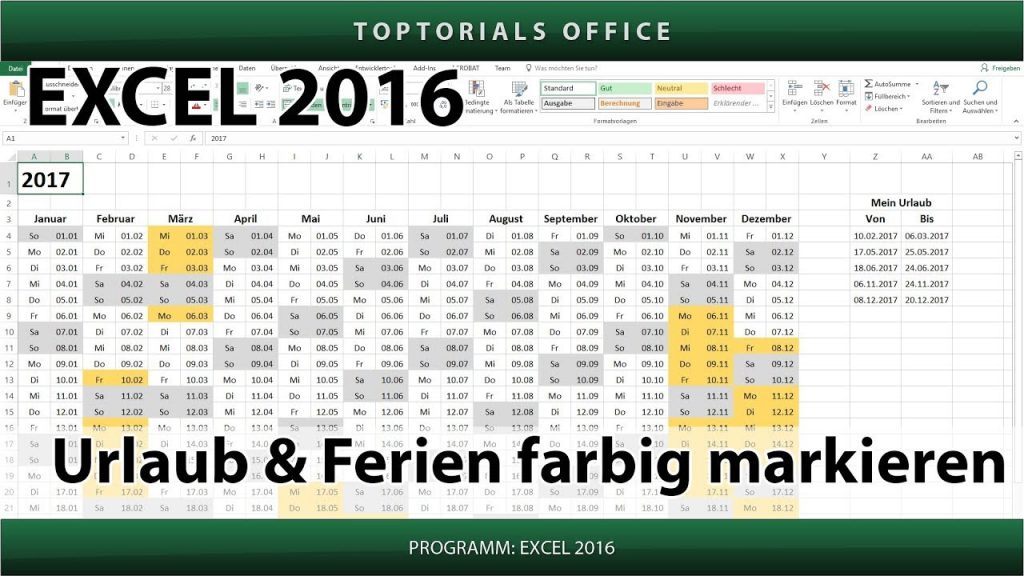 Ferien und Urlaub im Kalender farbig markieren In diesem Tutorial zeige ich Euch wie Ihr in Excel die Ferien oder Euren Urlaub im Kalender farbig markieren könnt. Für das ganze […]