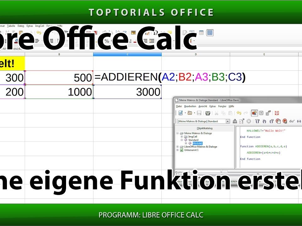Eine eigene Funktion erstellen (LibreOffice Calc) In diesem Tutorial zeige ich Euch wie Ihr in Libre Office Calc Eure eigene Funktion erstellen könnt. Ihr kennt das ja sicher schon von der Funktion =SUMME() oder […]