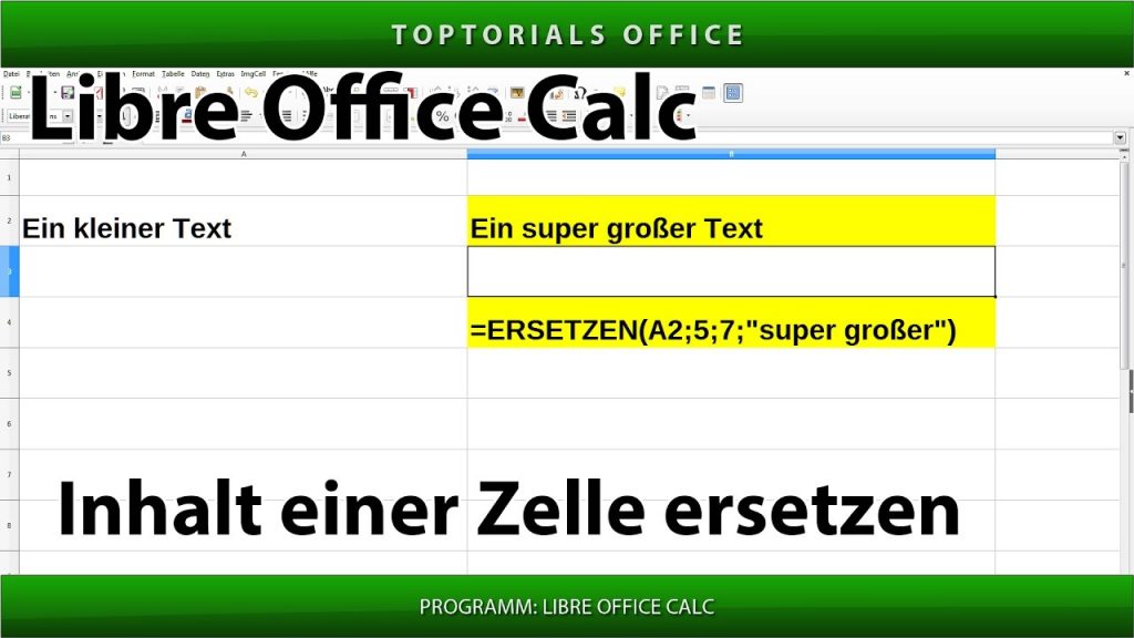 Teil des Inhalts einer Zelle ersetzen (LibreOffice Calc) In diesem Tutorial zeige ich Euch wie Ihr in Libre Office Calc einen Teil des Inhalts einer Zelle durch einen anderen ersetzen könnt. Wer das […]