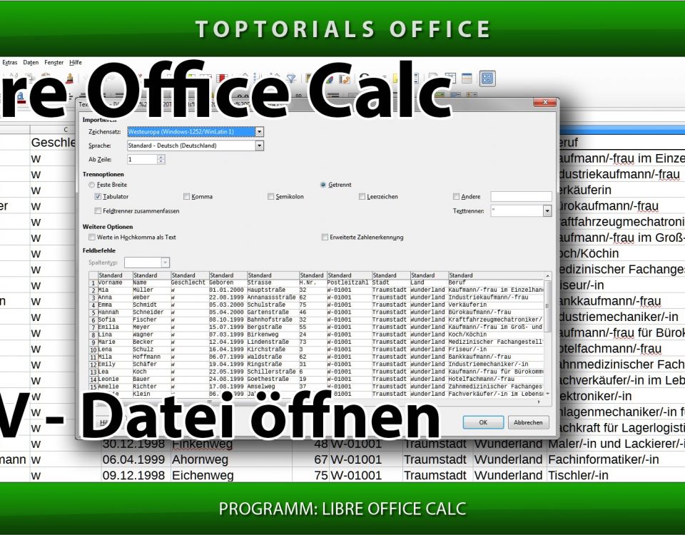 CSV Datei importieren (LibreOffice Calc) In diesem Tutorial zeige ich Euch wie Ihr eine CSV Datei in Libre Office ganz einfach importieren könnt. CSV Dateien sind nichts anderes als Textdateien in […]