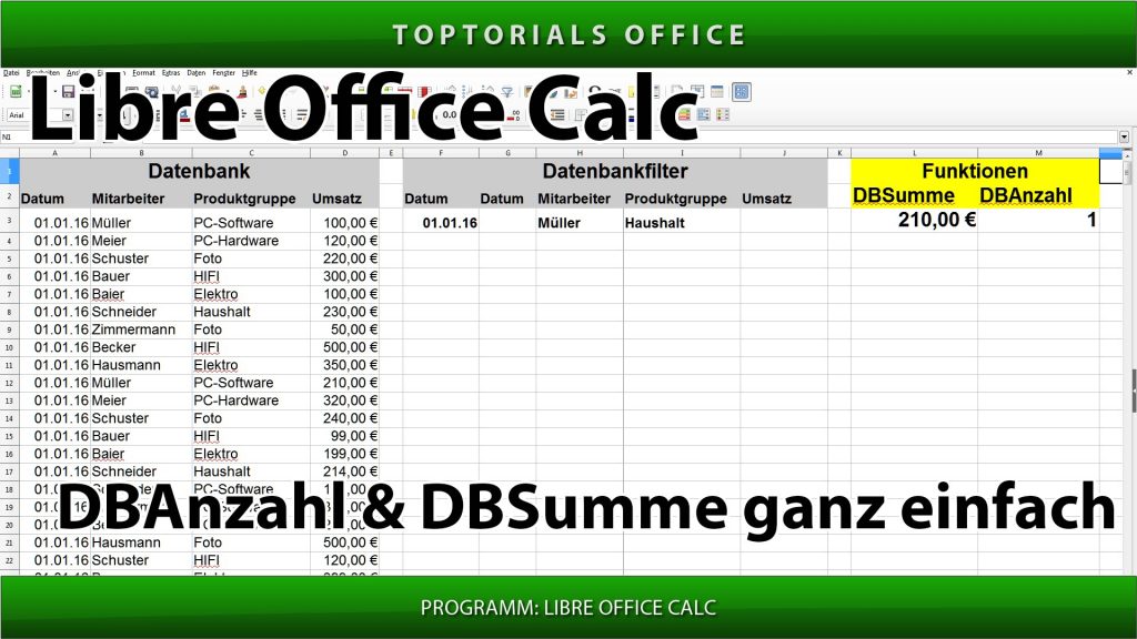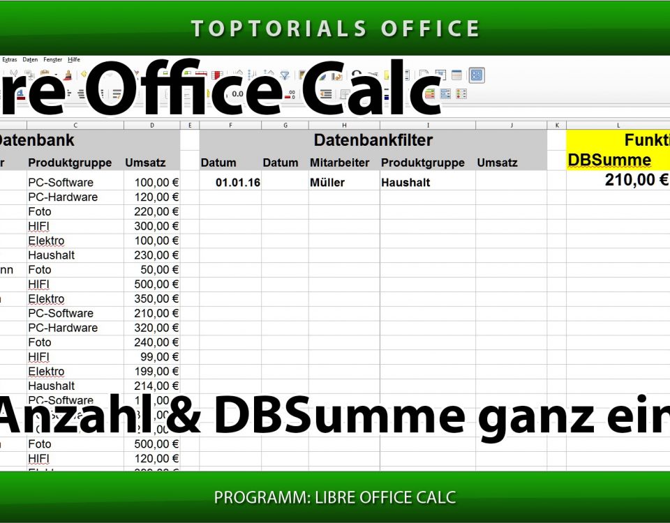 DBSumme DBAnzahl ganz einfach (LibreOffice Calc) In diesem Tutorial zeige ich Euch die beiden Funktionen DBSumme und DBAnzahl und wie man diese anwenden kann. Es gibt natürlich noch weitere DB Funktionen. […]