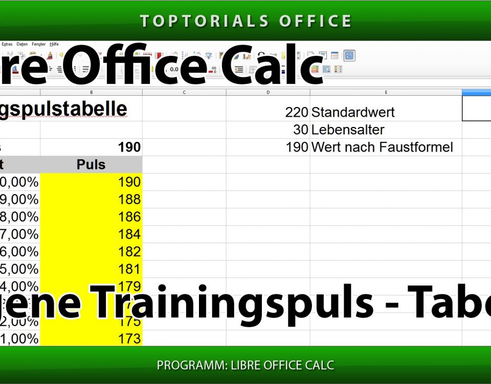 Eigene Trainingspulstabelle erstellen (LibreOffice Calc) In diesem Tutorial zeige ich Euch wie Ihr eine Trainingspuls – Tabelle erstellen könnt. Hier braucht Ihr nur den Maximalpuls von Euch eingeben und schon könnt […]