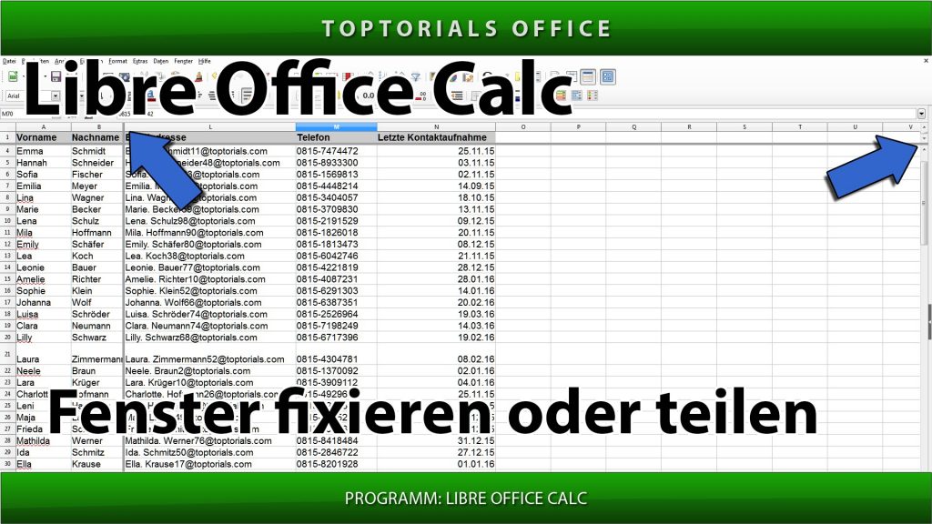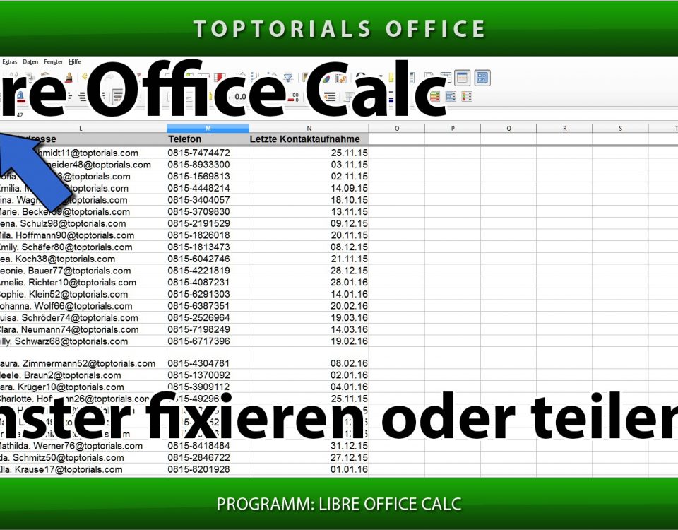 Fenster fixieren oder teilen (LibreOffice Calc) In diesem Tutorial zeige ich Euch wie Ihr in Libre Office Calc das Fenster fixieren oder teilen könnt. Damit habt Ihr die Möglichkeit Eure […]