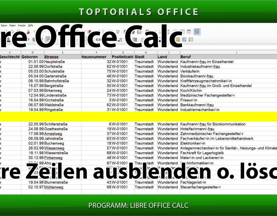 Leere Zeilen löschen oder ausblenden (LibreOffice Calc) In diesem Tutorial zeige ich Euch wie Ihr in Libre Office Calc leere Zeilen ausblenden oder aber auch löschen könnt. Wer das erste […]