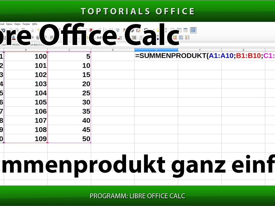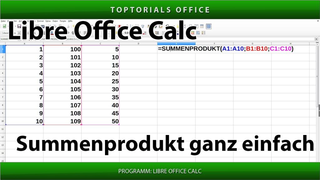 Summenprodukt ganz einfach (LibreOffice Calc) In diesem Tutorial zeige ich Euch wie Ihr in Libre Office Calc die Funktion SUMMENPRODUKT anwenden könnt. In einem weiteren Tutorial zeige ich Euch wie Ihr […]