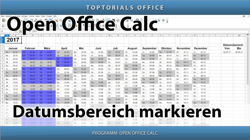 Datumsbereich im Kalender markieren In diesem Tutorial zeige ich Euch wie Ihr in OpenOffice Calc einen Datumsbereich im Kalender markieren könnt. Dies ist eine einfache Variante und gibt Euch die […]