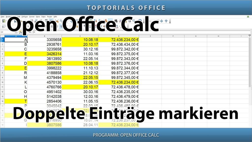 Doppelte Einträge farbig markieren In diesem Video Tutorial zeige ich Euch wie Ihr mit OpenOffice Calc doppelte Einträge markieren könnt. Sämtliche Einträge, die mehr als einmal vorkommen, könnt Ihr somit […]
