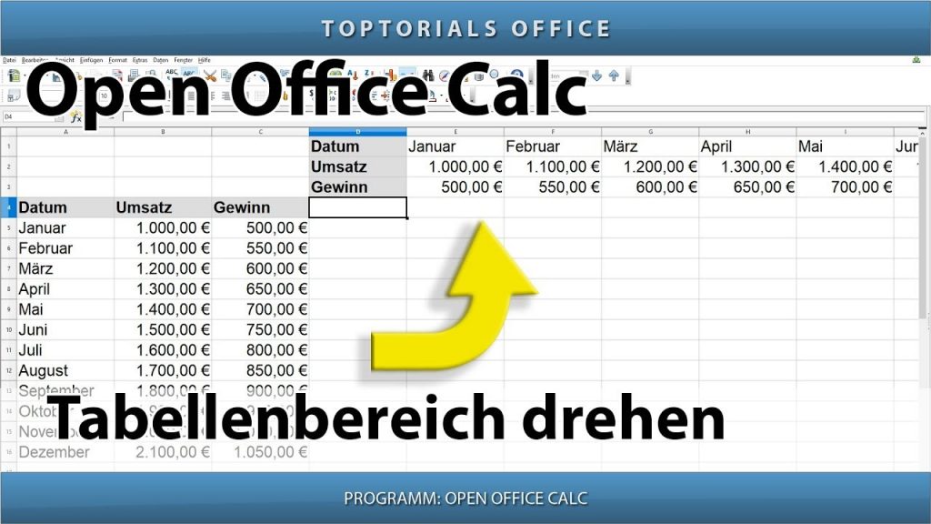 Tabelle drehen / Tabellenbereich drehen / Transponieren In diesem Video Tutorial zeige ich Euch wie Ihr mit OpenOffice Calc Eure Tabelle drehen könnt. Entweder eine ganze Tabelle oder einen Bereich. […]