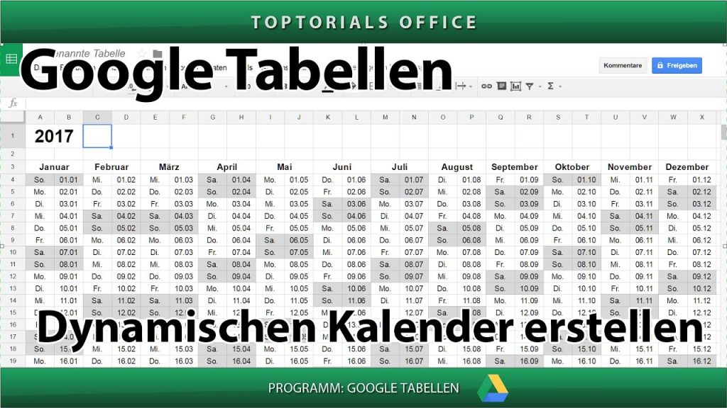 Dynamischer Kalender mit Google Tabellen Hier zeige ich Euch wie ein dynamischer Kalender in Google Tabellen / Spreadsheets erstellt werden kann. Der Aufbau dauert zwar vielleicht etwas länger als die […]