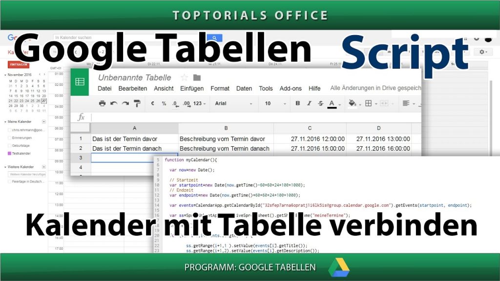 Kalender mit Tabelle verbinden (Google Tabellen Script) In diesem Tutorial zeige ich Euch wie Ihr Euren Google Kalender mit einer Google Tabelle / Spreadsheets verbinden könnt. Es gibt noch ein […]