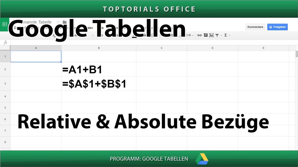 Relative Bezüge und absolute Bezüge (Google Tabellen) In diesem Tutorial zeige ich wie Ihr bei den GOOGLE TABELLEN relative Bezüge und absolute Bezüge benutzen könnt. Beim Kopieren von Formeln sind die […]