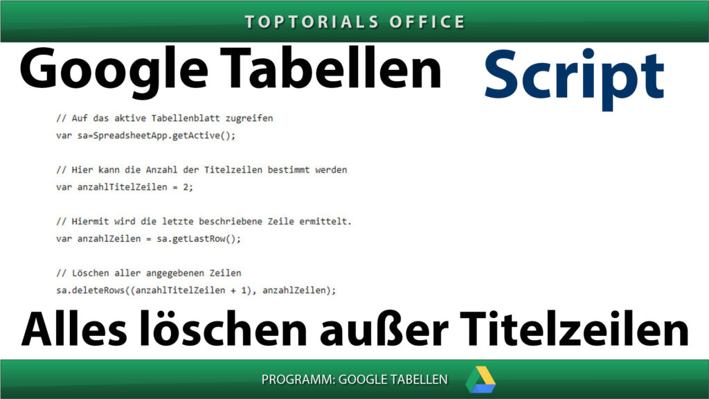 Alles löschen außer Titel mit Google Tabellen Script (Snippet) In diesem sehr kurzen Tutorial und sogenannten Snippet, "Alles löschen außer Titel mit Google Tabellen Script (Snippet)", zeige ich Euch wie […]
