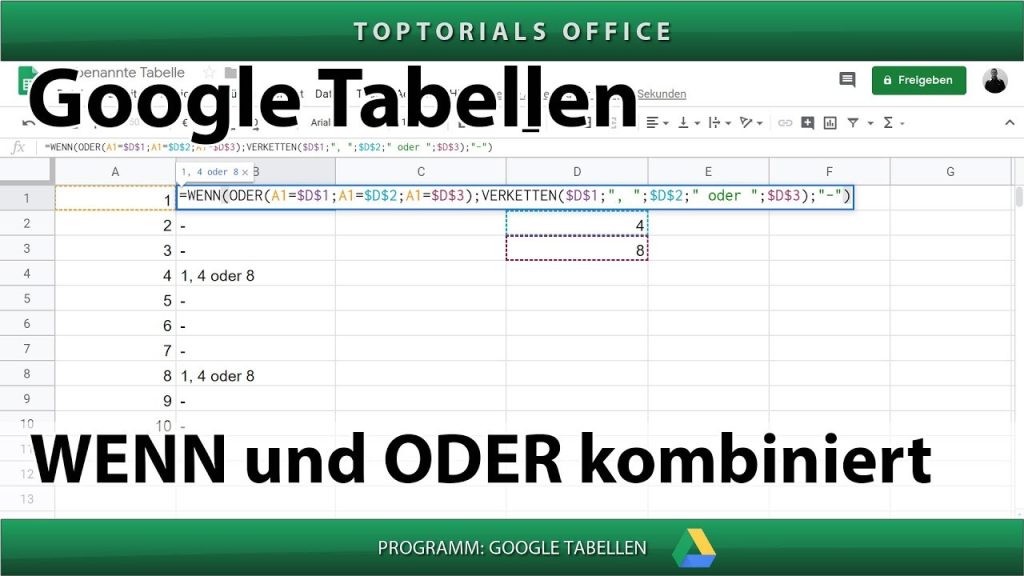 WENN und ODER kombiniert mit Google Tabellen In diesem Tutorial zeige ich Euch die Funktionen WENN und ODER kombiniert mit Google Tabellen Spreadsheets. Mit der normalen WENN Funktion lässt sich […]