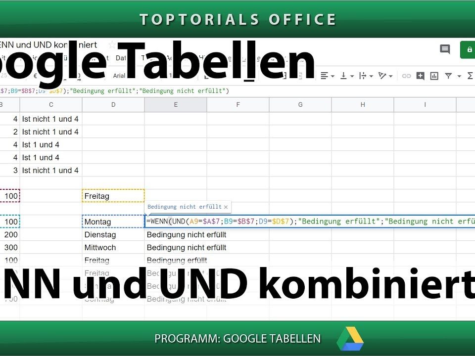 WENN und UND kombiniert mit Google Tabellen In diesem Tutorial zeige ich Euch die Funktionen WENN und UND kombiniert mit Google Tabellen Spreadsheets. Mit der normalen WENN Funktion lässt sich […]