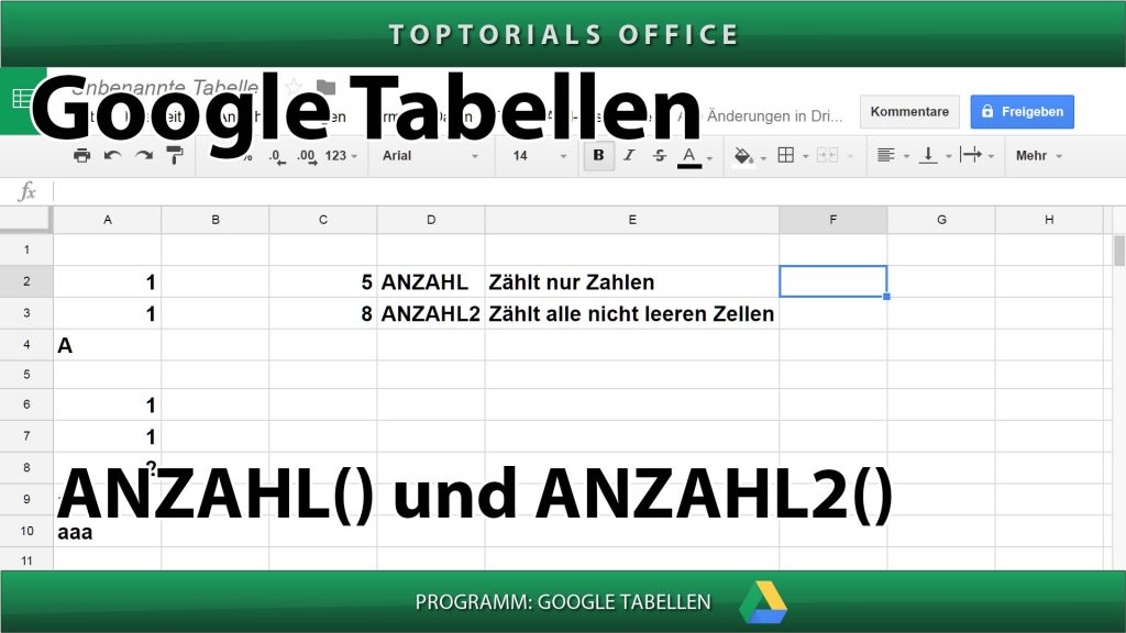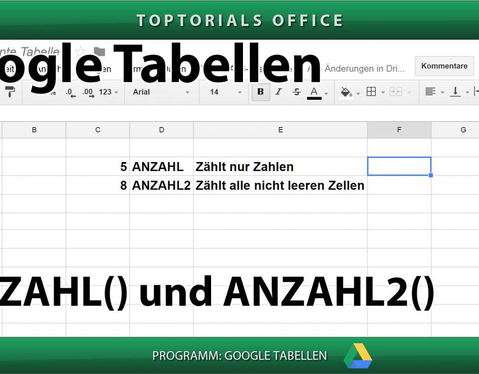 ANZAHL und ANZAHL2 (Google Tabellen) In diesem Tutorial zeige ich Euch wie Ihr bei den GOOGLE TABELLEN die Funktionen ANZAHL und ANZAHL2 nutzen könnt. Die eine Funktion zählt Zellen die nur Zahlen […]