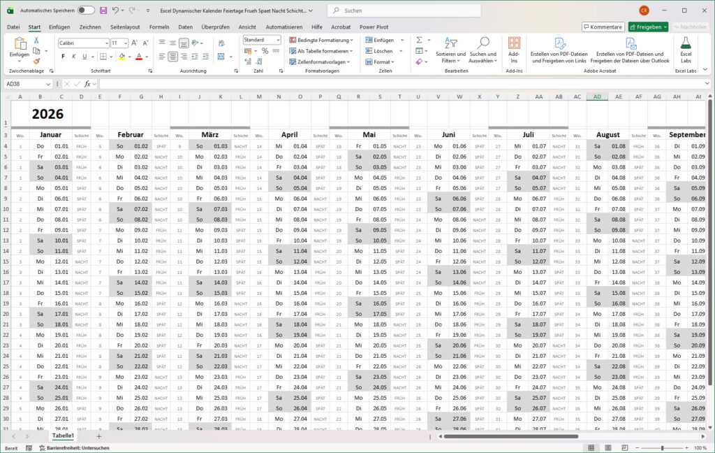 Dynamischer Excel Kalender mit Feiertage Frühschicht Spätschicht Nachtschicht Auf eine Anfrage von PAUL 😉 habe ich jetzt den normalen DYNAMISCHEN KALENDER etwas erweitert. Es ging hierbei zum Ersten um die […]