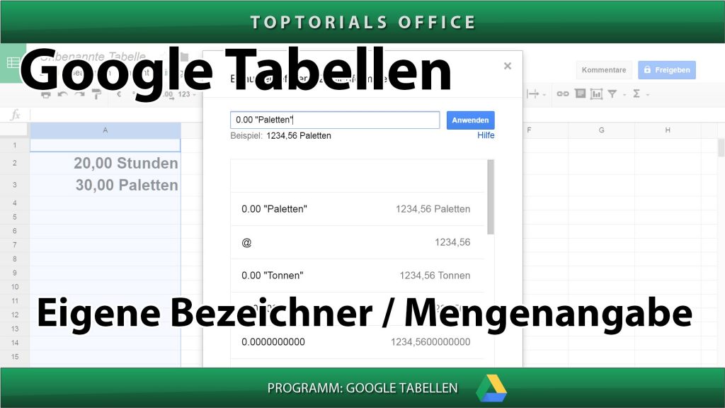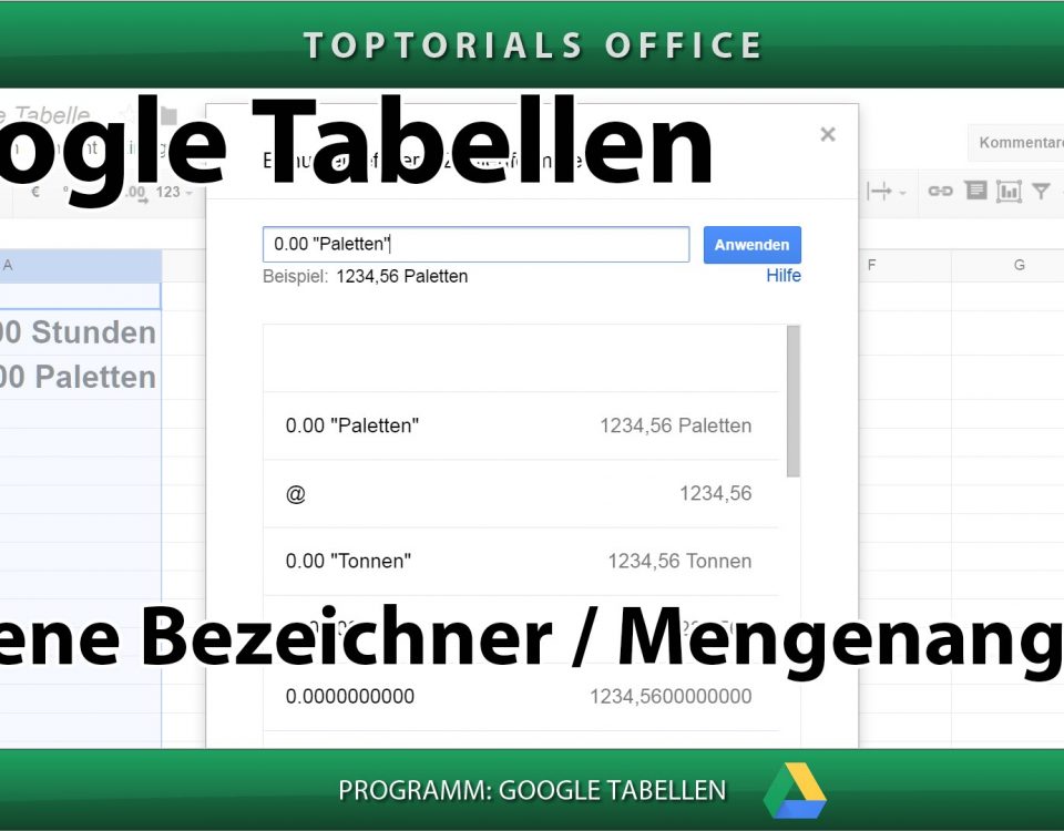 Eigene Bezeichner / Mengenangabe (Google Tabellen) In diesem Tutorial zeige ich Euch wie Ihr mit GOOGLE TABELLEN Eure eigenen Bezeichner angeben könnt. Damit könnt Ihr z.B. innerhalb der Zelle Angaben über […]