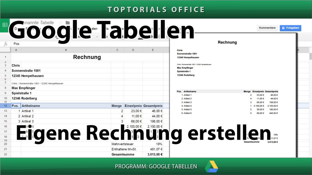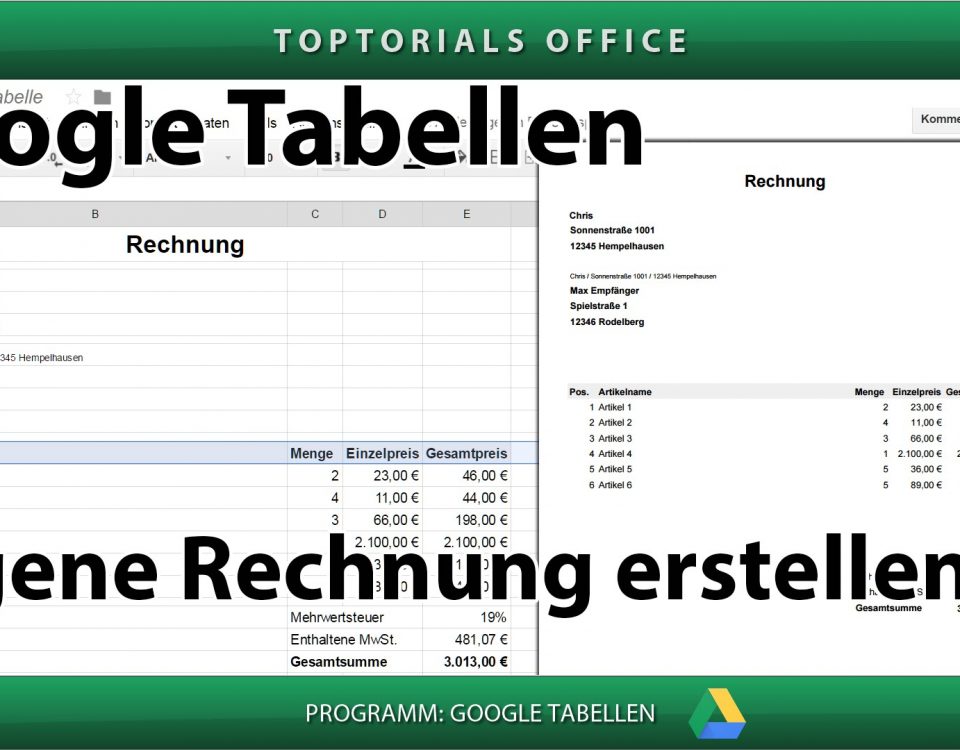 Eine Rechnung erstellen mit und ohne MwSt. (Google Tabellen) In diesem Tutorial zeige ich Euch wie Ihr mit GOOGLE TABELLEN eine eigene Rechnung erstellen könnt. Hier zeige ich Euch wie Ihr […]