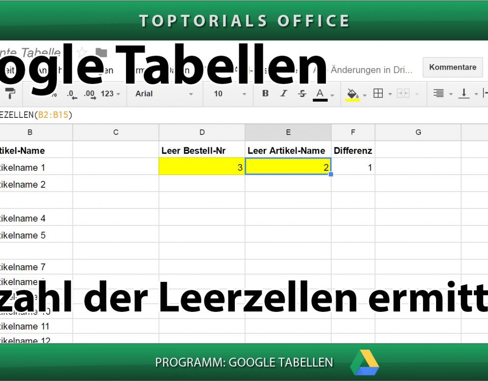 Leerzellen ermitteln mit ANZAHLLEEREZELLEN (Google Tabellen) In diesem Tutorial zeige ich Euch wie Ihr bei den GOOGLE TABELLEN die Anzahl der leeren Zellen ermitteln könnt. Es gibt natürlich noch weitere Möglichkeiten Zellen […]