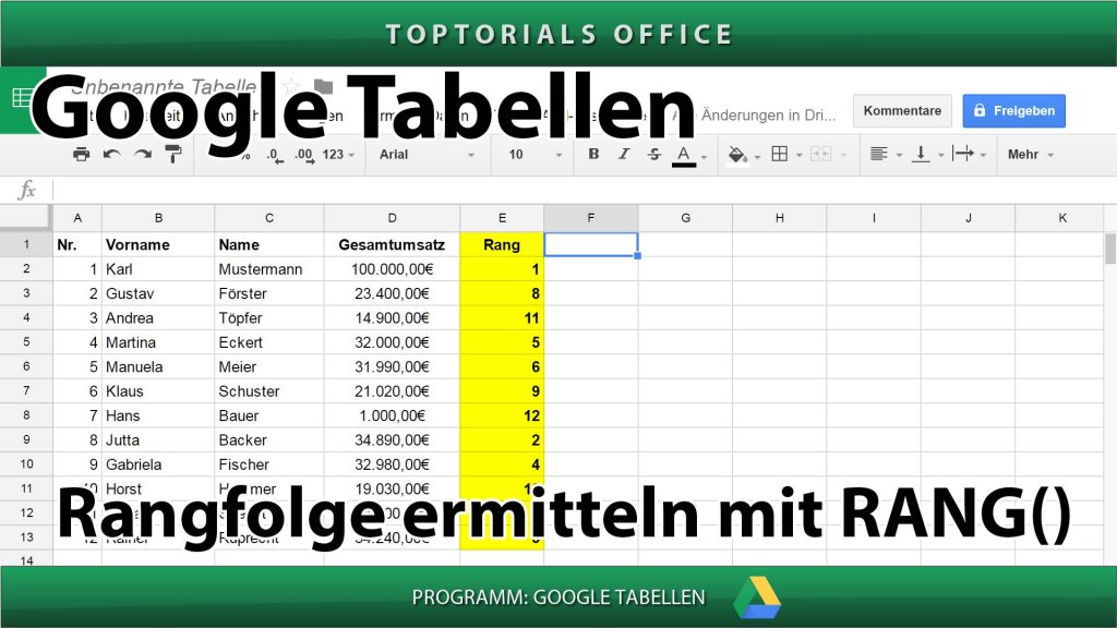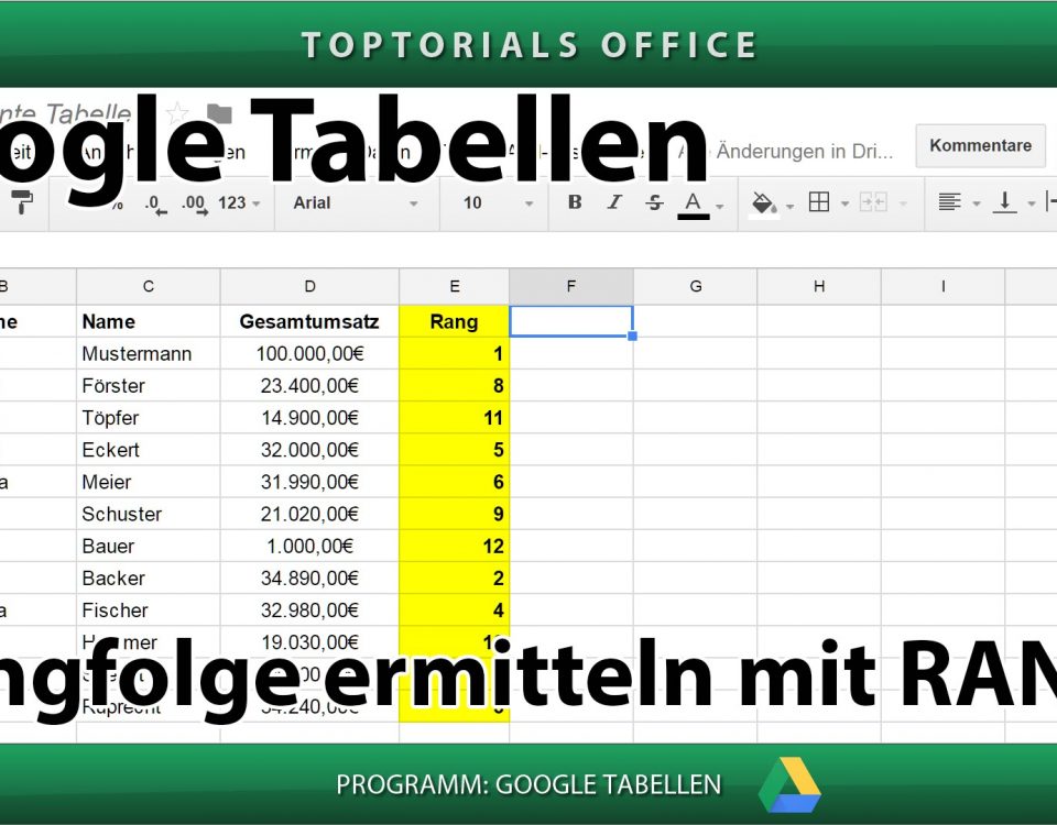 Rangfolge ermitteln mit RANG (Google Tabellen) In diesem Tutorial zeige ich Euch wie Ihr bei den GOOGLE TABELLEN die Rangfolge mit der Funktion RANG ermitteln könnt. Damit könnt Ihr in Eurer Tabelle […]