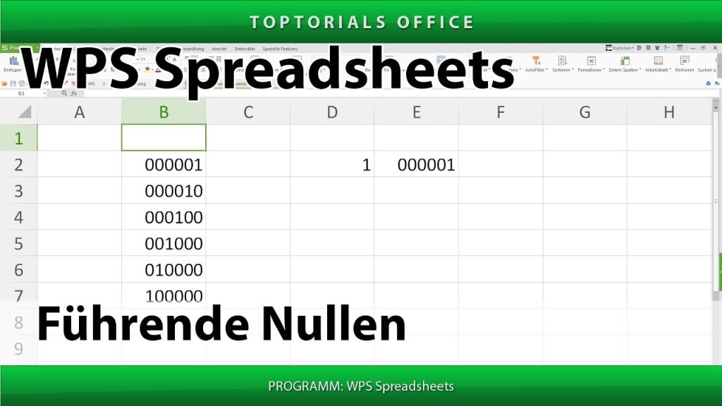 Führende Nullen (WPS Spreadsheets) Hier in diesem Video-Tutorial zeige ich Euch wie Ihr in WPS Spreadsheets Euren Zahlen führende Nullen voranstellen könnt. Das ganze funktioniert über Zellen formatieren. Die Formatierung […]