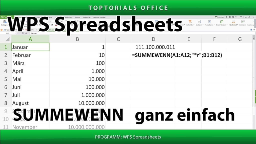 Summewenn ganz einfach (WPS Spreadsheets) In diesem leicht verständlichen Video-Tutorial zeige ich Euch in WPS Spreadsheets wie Ihr die Funktion SUMMEWENN anwenden könnt. Hiermit lassen sich Zellen anhand von festgelegten […]